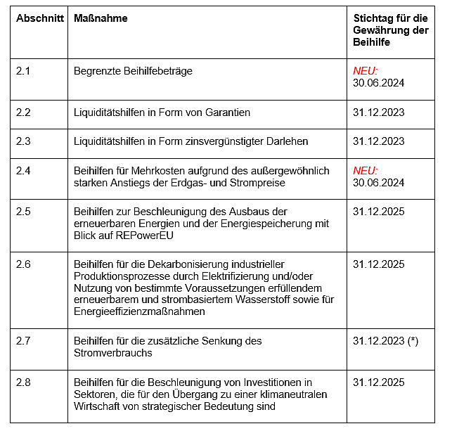 Unverändert können Maßnahmen, die auf der Grundlage des Rahmens in Form von rückzahlbaren Vorschüssen, Garantien, Darlehen oder anderen rückzahlbaren Instrumenten gewährt wurden, in andere Beihilfeformen wie Zuschüsse umgewandelt werden, sofern die Umwandlung spätestens am 30. Juni 2024 erfolgt.